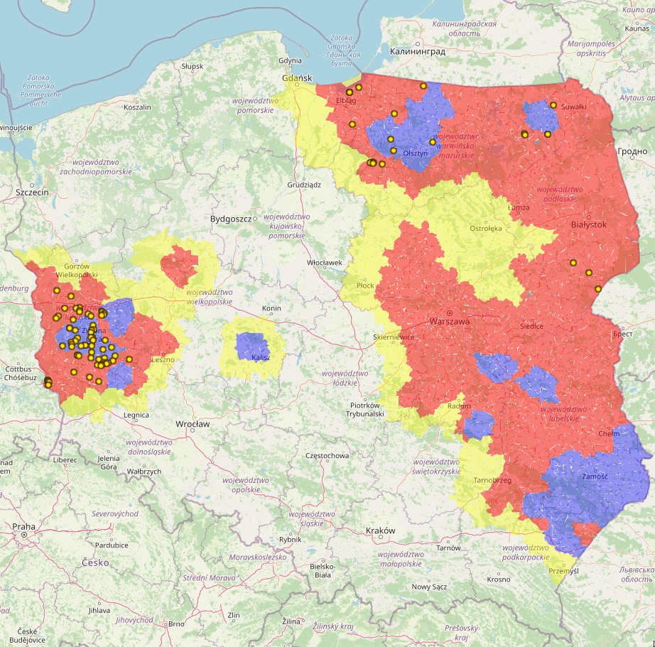 Porównanie mapy naszych obwodów i mapy stref ASF: